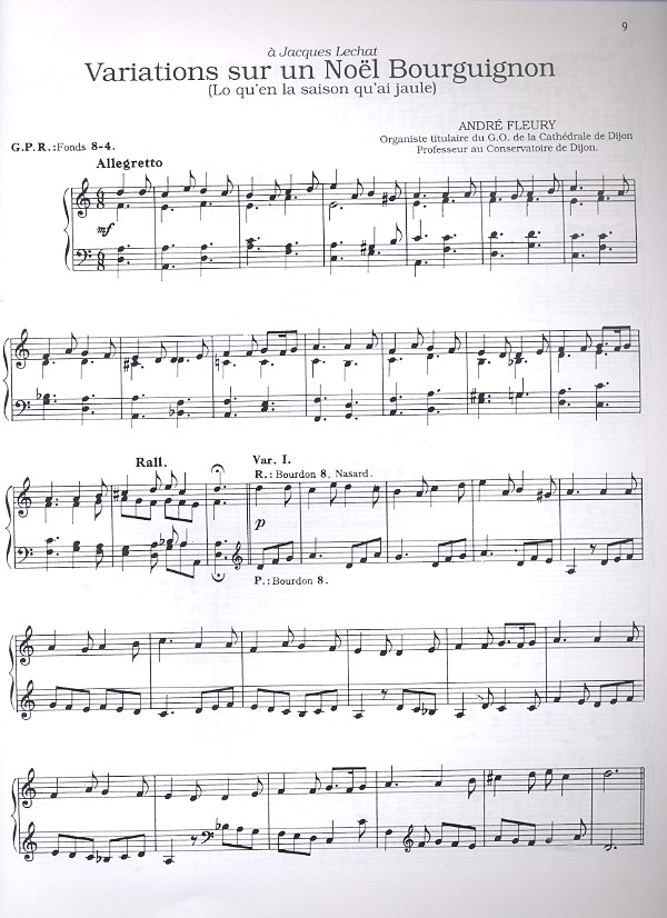 Kalmus Classic Series Frankreich : Appelons Nau - Noel (Villard) Saboly - Noel (Bourdon) Variations sur un Noel bourguignon (Fleury) Noel Vosgien (Bouvard) Noel ancien (Doyen) Noel flamand (Joulain) Ricercare pour le temps de Noel (Paponaud) Deutschland : Toccata (Pachelbel) Ricercar on Ave Maria klare (Fischer) Ricercar on Der Tag der ist so freudenreich (Poglietti) Variations on Lasst uns das Kindelein wiegen (Murschhauser) Aria and Variations (Murschhauser) Chorale on Vom Himmel hoch (Pachelbel) CHorale on In Dulci Jubilo (Sichers Orgeltabulatur) Magnificat octavi toni (Kindermann) Secundus Versus Tertius Versus Quintus Versus Sextus Versus