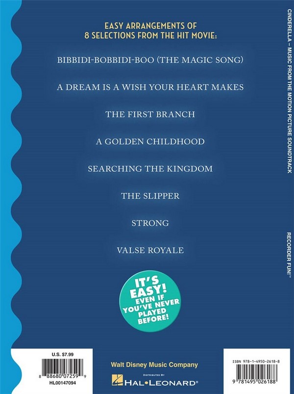 Recorder Fun with easy Instructions and Fingering Chart Music from the Disney Motion Picture Soundtrack Bibbidi-bobbidi-boo (The Magic Song) A Dream Is A Wish Your Heart Makes The First Branch A Golden Childhood Searching The Kingdom The Slipper Strong Valse Royale