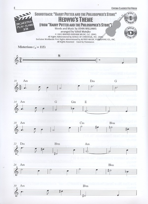 Matejko, Vahid, arr. As Time goes by (from Casablanc) Ghostbusters Gonna fly now (from Rocky) Hedwig's Theme (from Harry Potter) Hogwart's Hymn (from Harry potter) I don't want to miss a Thing (from Armageddon) In Dreams (from The Lord of the Rings) James Bond Theme Miss Marple's Theme Over the Rainbow (from The Wizard of Oz) Pink Panther Star Wars