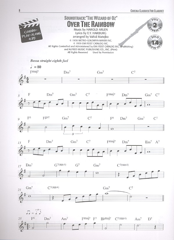 Matejko, Vahid, arr. As Time goes by (from Casablanc) Ghostbusters Gonna fly now (from Rocky) Hedwig's Theme (from Harry Potter) Hogwart's Hymn (from Harry potter) I don't want to miss a Thing (from Armageddon) In Dreams (from The Lord of the Rings) James Bond Theme Miss Marple's Theme Over the Rainbow (from The Wizard of Oz) Pink Panther Star Wars