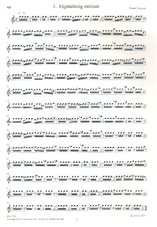 5 weitere Solowerke Eigensinniges Ostinato (A) Widerspenstige Pausen (T) Fest der Intervalle (A/B) Drehung im Stillstand (Piccolo) Logelei (A)