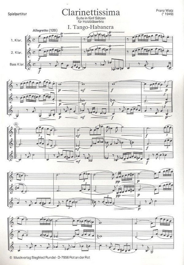 | Untertitel: | für 3 Klarinetten (BB Baß) 5 Spielpartituren und 3 Stimmen |
