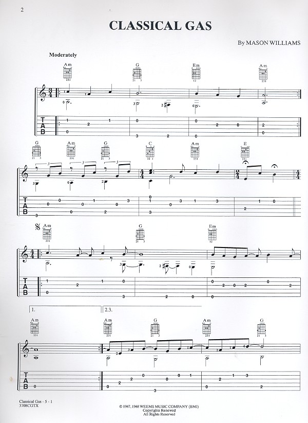 Classical Gas guitar sheet music