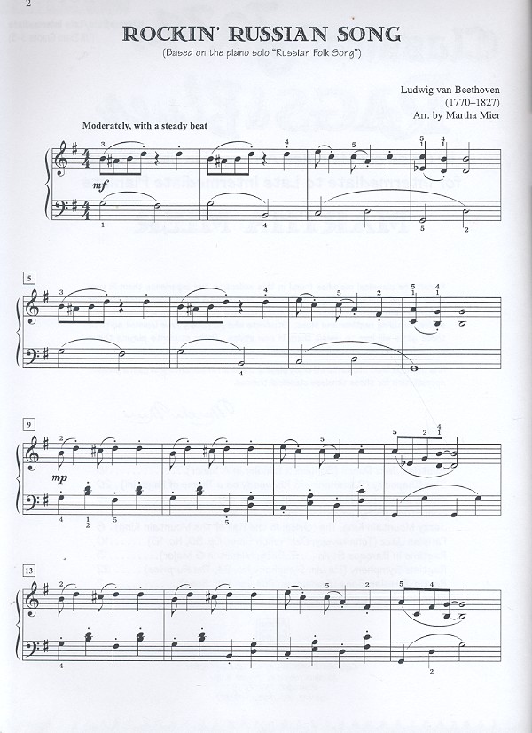 Mier, Martha, arr Intermediate to late intermediate Austrian Jazz Dance (after Schubert) Blue Rhapsody (after Rachmaninoff) Bluesy Etude (after Gurlitt) Cool Etude (after Schytte) Jazzy Mountain King (after Grieg) Parisian Jazz (after Tschaikowski) Ragtime in Baroque Style (after Bach) Ragtime Symphony (after Haydn) Rockin' Russian Song (after Beethoven) Russian Blues (after Borodin)