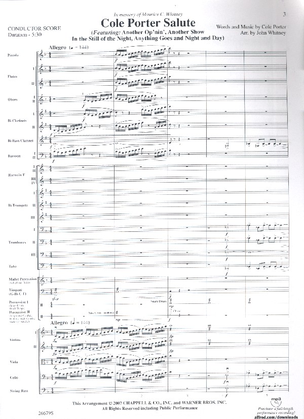 Whitney, John, arr. Another Op'nin' another Show In the Still of the Night Anything goes Night and Day