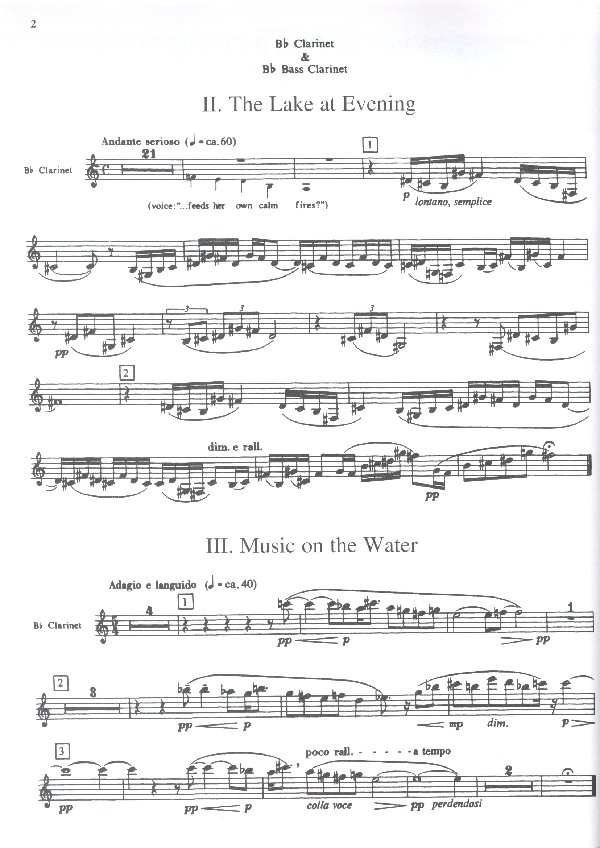 Songs about Spring: Who knows if the moon's a balloon Spring is like a perhaps hand In Just-spring In Spring comes When faces called flowers float out of the ground - Six Elizabethan Songs: Spring Sleep Winter Dirge Daiphenia Hymn Letters from Composers: Fréderic Chopin Wolfgang Amadeus Mozart Franz Schubert Johann Sebastian Bach Claude Debussy Giacomo Puccini -Robert Schumann To Be Sung Upon the Water: Prologue: Shadow and substance The lake at evening Music on the Water Fair is the swan In remembrance of Schubert Hymn near the rapids The lake at night Epilogue: De profundis Miss Manners on Music: Prologue Manners at a concert Manners at a ballet Manners for contemporary music Manners at a church recital Manners at the opera Envoi