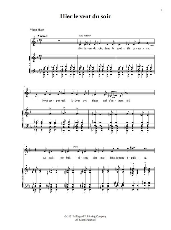 Zaborowski, Monika, ed Hier, le vent du soir (Victor Hugo) (1903) Berceuse dArmorique (Anatole le Braz) (1914) Nocturne (des Cantilènes) (Jean Moréas) (1914) Sérénade (Adolphe Retté) (1914) Dans une musette (Jean Dominique) (1919) Pannyre aux talons dor (Albert Samain) (1919) Soir (Albert Samain) (1920) La passante (Poldowski) (1924) O! Let the Solid Ground (Alfred Tennyson) (1900) Down by the Salley Gardens (W.B. Yeats) (1900) Denholm Dean (W.D. Scott-Moncrieff) (1904) Song (William Blake) (1924) Reeds of Innocence (William Blake) (1924) To Love (Anon.) (1927)