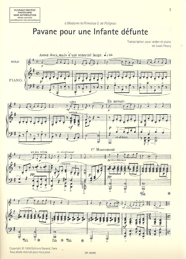 Pavane pour une infante défunte Menuet Pavane de La belle aux bois dormant Kaddish Rigaudon Berceuse sur le nom de Gabriel Fauré Five o'clock Pastourelle Boléro Adagio