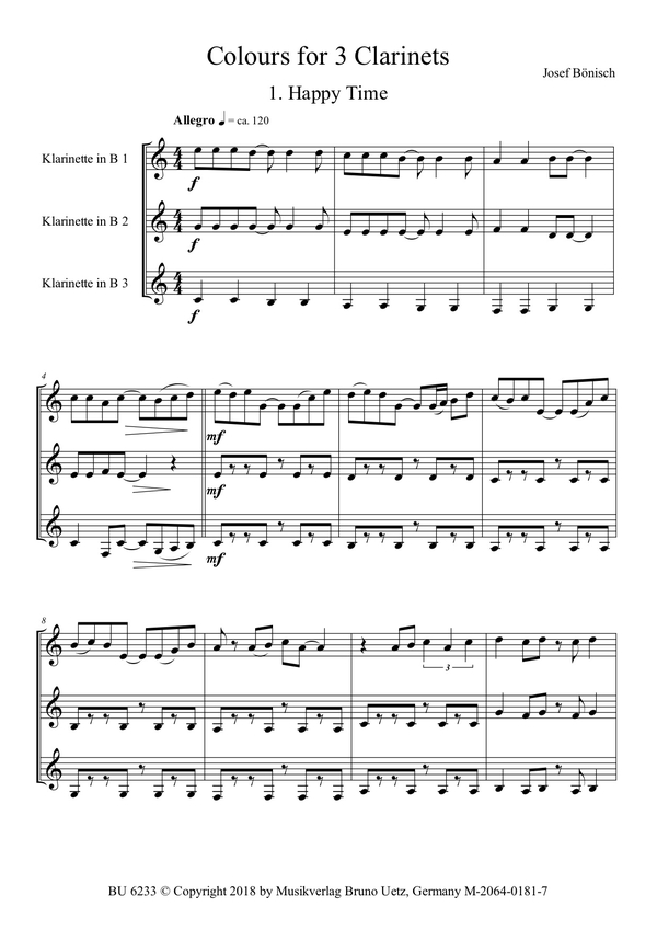 | Untertitel: | für 3 Klarinetten Partitur und Stimmen |