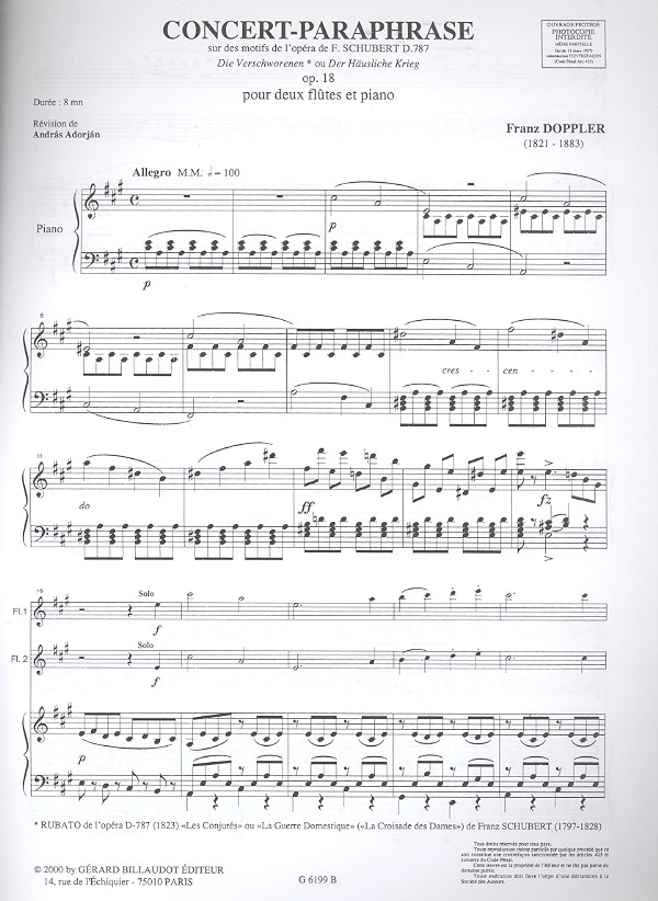 | Untertitel: | de Schubert op.18 pour 2 flutes et piano parties |
