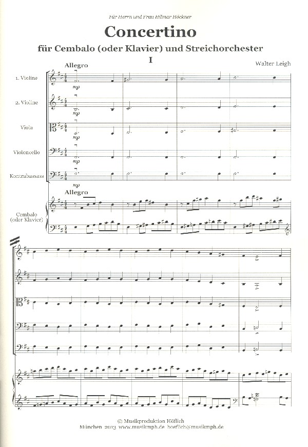 | Untertitel: | für Cembalo (oder Piano) und Streicher Studienpartitur |