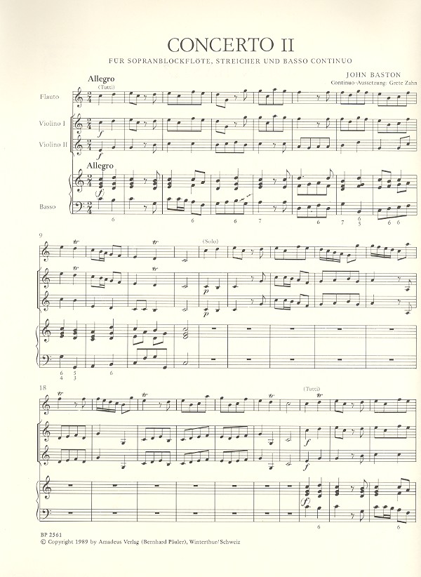 | Untertitel: | Sopranblockflöte (Flöte, Violine), Streicher und Bc |