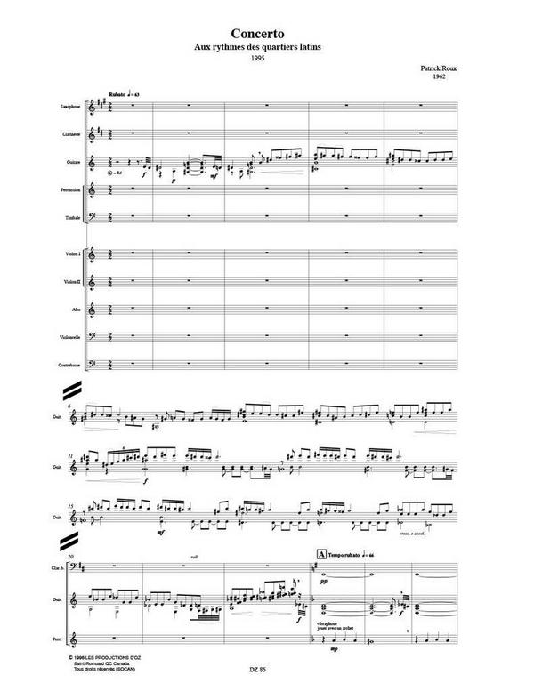 | Untertitel: | pour sax, clar, guit, perc et orchestra á chordes, partition |