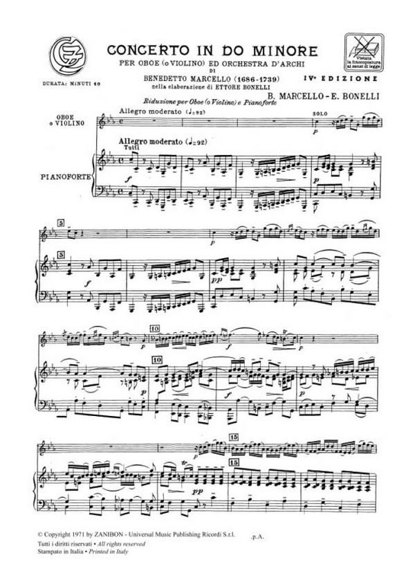 Bonelli, Ettore, ed Orig. per oboe ed orchestra d'archi