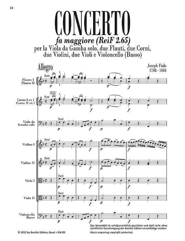 | Untertitel: | per la viola da gamba solo, 2 flauti, 2 corni, 2 violini, 2 violi e violoncello (basso) partitura e parte di viola da gamba solo |
