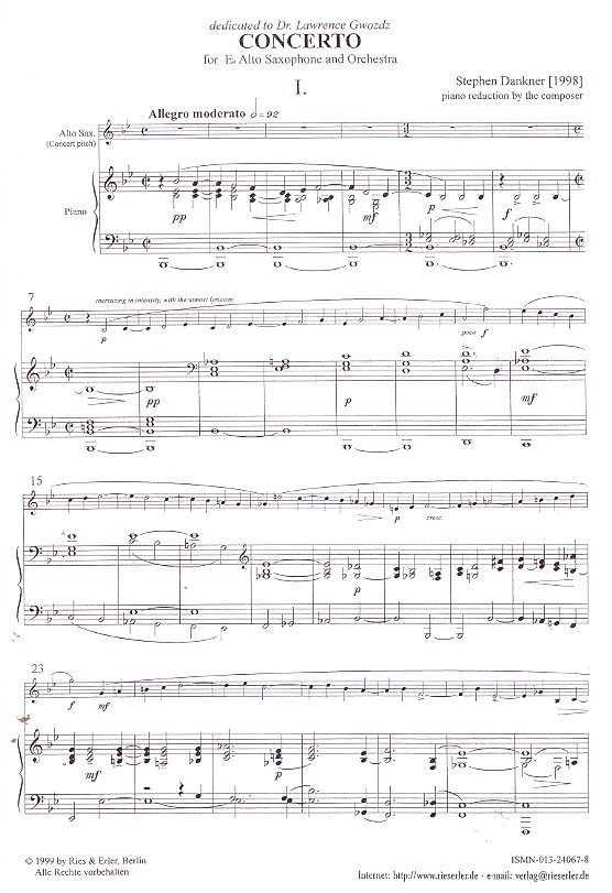 | Untertitel: | Orchester für Altsaxophon und Klavier |