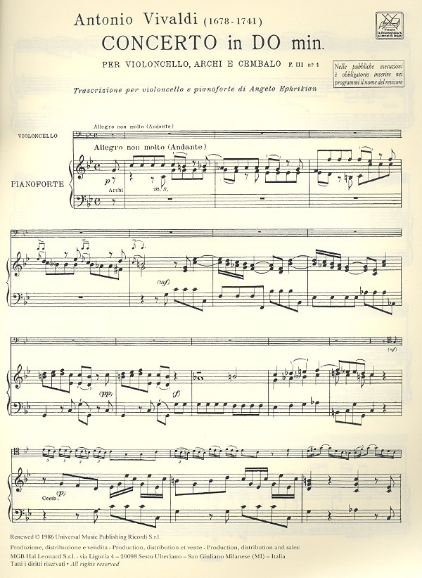 | Untertitel: | archi e cembalo per violoncello e pianoforte |