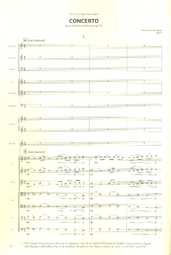 | Untertitel: | für Piccoloflöte und Orchester Partitur |