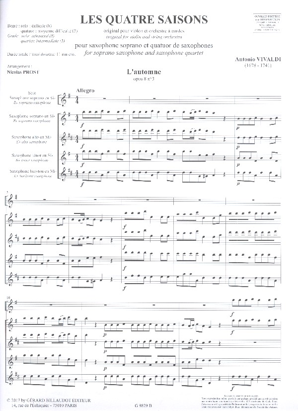 Collection Jean-Yves Formeau Prost, Nicolas, arr. Les quatre saisons L'Automne Die vier Jahreszeiten Herbst