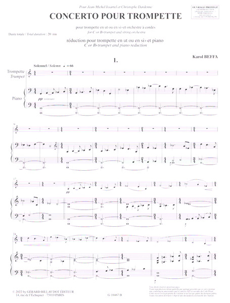 | Untertitel: | pour trompette en ut ou sib et orchestre à cordes réduction pour trompette (ut/sib) et piano |