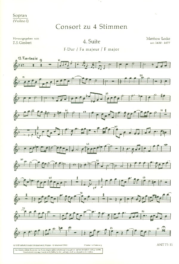 | Untertitel: | für 4 Blockflöten (SATB) oder Streicher Einzelstimme - Sopran-Blockflöte/Violine I |