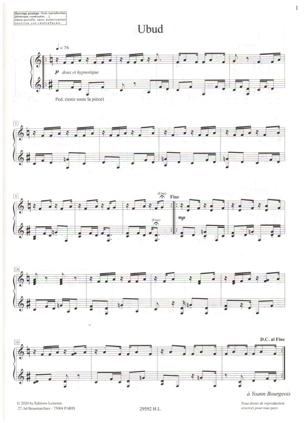 Ubud Rumba Sicilienne Vaudou Buto Avant-Deux Sarabande Faune Sama Carimbô Musette Roum Pavane Gnossienne Awa Odori Odette Valse lente Ezpata-dantza Soko Mort du cygne