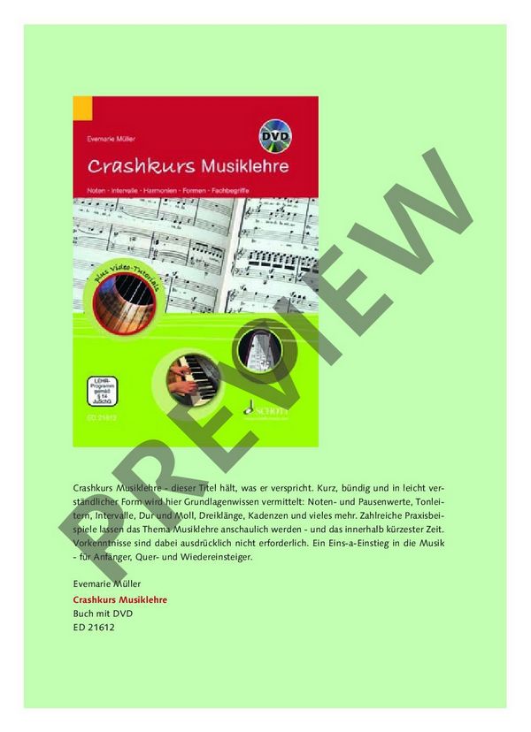 Intervalle, Akkorde, Skalen, Kadenzen und Modulationen diese und andere Basisthemen werden in 'Crashkurs Harmonielehre' anschaulich und kompakt dargestellt. Darüber hinaus thematisiert das Buch die verschiedenen stilistischen Ausprägungen der Harmonielehre im Generalbass in der klassischen und romantischen Musik, im Jazz und in der populären Musik. Von geringen Vorkenntnissen in Notation und Musiklehre abgesehen, ist dieses Buch voraussetzungslos lesbar.
