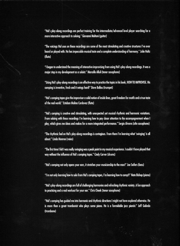 ext: English, francais, deutsch Intermediate to advanced levels 32 chord progressions of standard jazz songs. Chord voicings and bass lines played on an acoustic midi grand piano. Improvised reharmonization and rhythmic displacement of the original chords. Lead sheets in C, B flat, and E flat. CD version includes standard midi files for use by those with CD-ROM equipped computer sequenced midi work stations.