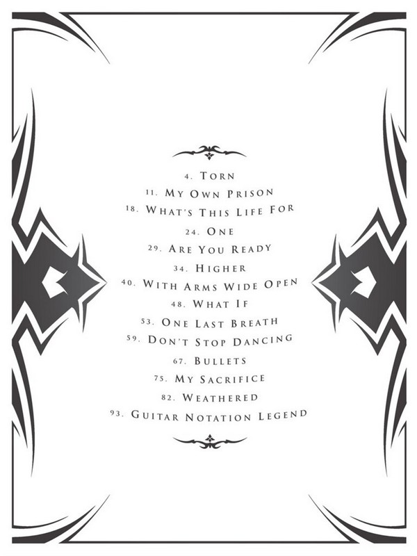 1. Are You Ready? 2. Bullets 3. Don't Stop Dancing 4. Higher 5. My Own Prison 6. My Sacrifice 7. One 8. One Last Breath 9. Torn 10. Weathered 11. What If 12. What's This Life For 13. With Arms Wide Open