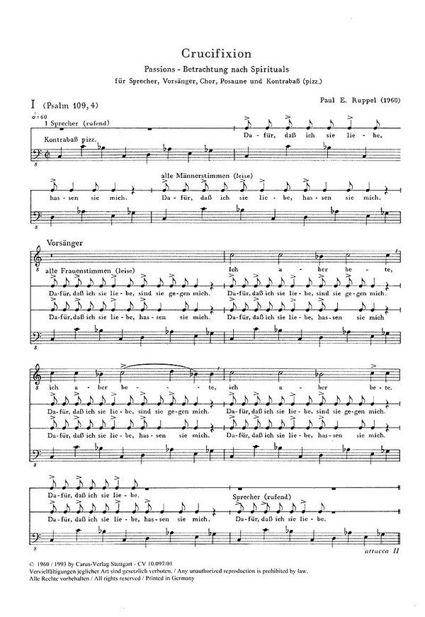 | Untertitel: | für Sprecher, Vorsänger (Tenor), Chor, Posaune und Kontrabass Partitur |