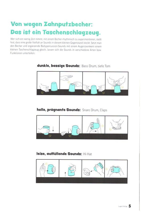 12x Becher-Percussion für die Unterstufe von traditionell bis Pop Wie Sie mit einem simplen Becher beliebte Hits und traditionelle Songs begleiten, erfahren Sie in diesem Heft. Sie erhalten 12 rhythmische Begleitideen und dazu Video-Tutorials als Downloads. Ob Die Gedanken sind frei, Dance Monkey (Tones & I), Sowieso (Mark Forster) oder auch In der Halle des Bergkönigs (E. Grieg) die Songauswahl ist vielfältig und sorgt für jede Menge Praxis-Spaß bei Ihren Unterstufenschüler*innen.