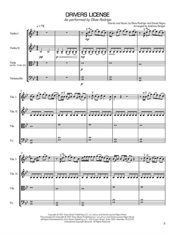 Gröger, Anthony, arr. As performed by Olivia Rodrigo