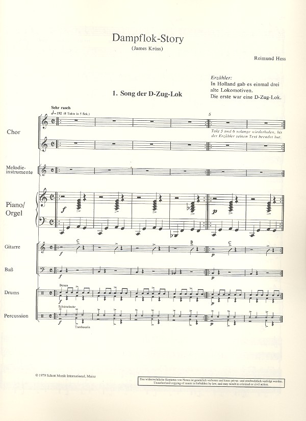 | Untertitel: | für Kinderchor (SMezA) mit Sprecher, Klavier (Orgel), 2 Melodie-Instru Partitur - (= Klavierstimme) |