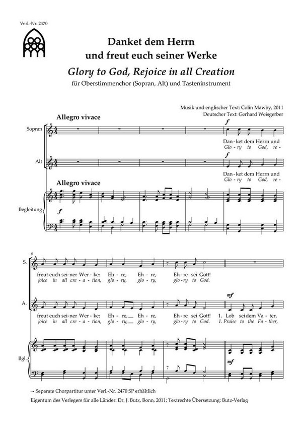 Weisgerber, Gerhard, deutscher Text Glory to God rejoice in all Creation