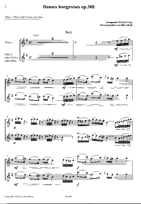 | Untertitel: | für 1-2 Flöten und Klavier Partitur und Stimmen |
