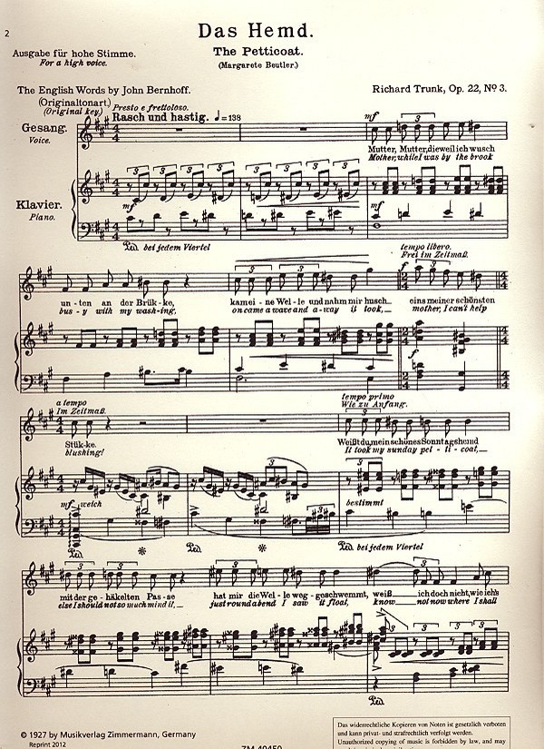 Das Hemd op.22,3 für Gesang (hoch)