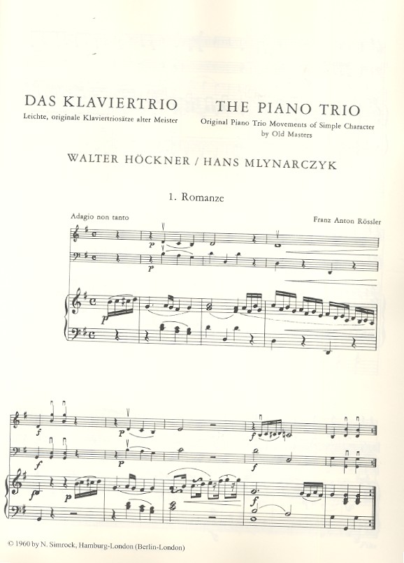Leichte, originale Klaviertrio-Sätze alter Meister