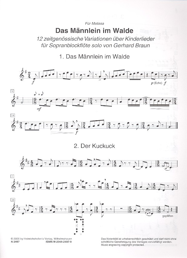 | Untertitel: | 12 Variationen über Kinderlieder für Sopranblockflöte solo |