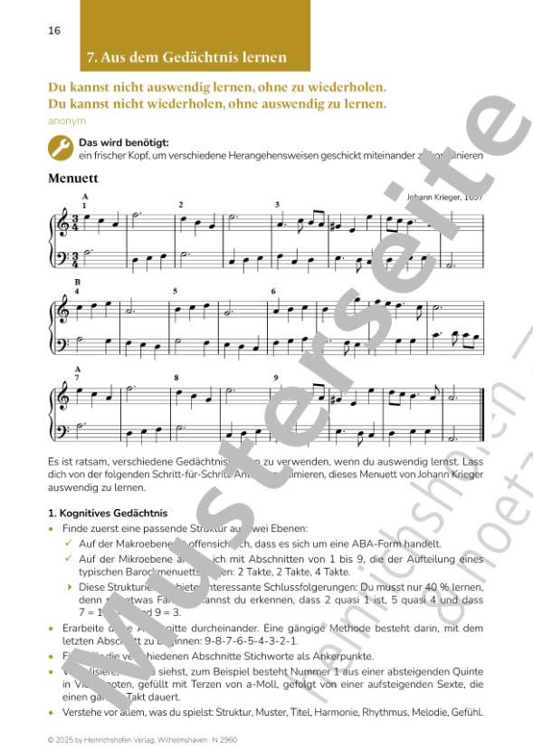 Üben muss nicht langweilig oder eintönig sein - es kann inspirieren, motivieren und echte Freude bereiten. Das Üben lieben lernen zeigt, wie gezielte Methoden das musikalische Lernen effizienter und kreativer gestalten. Dieses Buch stellt 30 innovative Übemethoden vor, die mit Aufgaben, Zitaten und Anekdoten praxisnah erläutert werden. Wissenschaftlich fundierte Erkenntnisse, wie die Rotierende Aufmerksamkeit, helfen dabei, mentale Prozesse optimal zu nutzen und schneller Fortschritte zu erzielen. Statt monotonem Wiederholen steht ein bewusstes und kreatives Üben im Mittelpunkt, das die Musikalität auf neue Weise fördert. Die Inhalte sind für alle Musikbegeisterten geeignet unabhängig von Alter, Erfahrungslevel oder Instrument. Durch die Vielfalt der Methoden lässt sich ein individuelles Übekonzept zusammenstellen, das den Lernprozess nicht nur effizienter, sondern vor allem freudvoller macht. Musizieren mit Begeisterung beginnt beim richtigen Üben Das Üben lieben lernen zeigt den Weg dorthin.