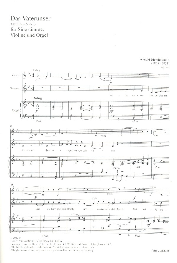 | Untertitel: | für Gesang, Violine und Orgel (Klavier) 2 Partituren und Instrumentalstimme |