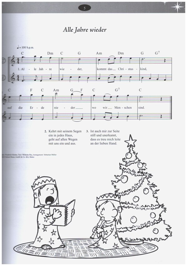 100 Weihnachtslieder leicht arrangiert Mit optionaler Bassstimme zum Download Müller, Sebastian, arr. All I Want For Christmas Is You (Mariah Carey) Alle Jahre wieder Am Weihnachtsbaume die Lichter brennen Andachtsjodler Another Rock And Roll Christmas (Garry Glitter) Auf, Christen, singt festliche Lieder Away In A Manger (Kirkpatrick) Away In A Manger (Mueller) Carol Of Bells Christmas (All Over Again) (Tom Petty & The Heartbreakers) Christmas Time (Bryan Adams) Deck Of Halls Der Christbaum ist der schönste Baum Dicke rote Kerzen (Detlev Jöcker) Do They Know It's Christmas (Band Aid) Driving Home For Christmas (Chris Rea) Eine Muh, eine Mäh Engel auf den Feldern singen (Gloria in excelsis deo) Es ist ein Ros' entsprungen Es ist für uns eine Zeit angekommen Es kommt ein Schiff geladen Es schneit (Rolf Zuckowski und seine Freunde) Es wird scho glei dumpa Feliz Navidad (José Feliciano) Freu' dich, Erd' und Sternenzelt Frosty The Snowman (Gene Autry) Fröhliche Weihnacht überall Go Tell It On The Mountain God Rest You Merry, Gentlemen Hark! The Herald Angels Sing Have Yourself A Merry Little Christmas (Judy Garland) Heidschi bumbeidschi Heiligste Nacht Herbei, o ihr Gläubigen I Believe In Father Christmas (Emerson, Lake & Palmer) I Wish It Could Be Christmas Everyday (Wizzard) Ich steh an deiner Krippen hier Ihr Kinderlein, kommet Ihr Hirten erwacht I'll Be Home For Christmas (Bing Crosby) In der Weihnachtsbäckerei (Rolf Zuckowski und seine Freunde) In dulci jubilo Jingle Bell Rock (Bobby Helms) Jingle Bells Joseph, lieber Joseph mein Joy To The World Kling, Glöckchen Kommet, ihr Hirten Lasst uns das Kindlein wiegen Lasst uns froh und munter sein Last Christmas (Wham!) Leise rieselt der Schnee Let It Snow (Vaughn Monroe) Lobt Gott ihr Christen alle gleich Lonely This Christmas (Elvis Presley/Mud) Macht hoch die Tür Maria durch ein Dornwald ging Mary's Boy Child (Boney M.) Menschen, die ihr wart verloren Merry Xmas Everybody (Slade) Mistletoe And Wine (Cliff Richard) Morgen, Kinder, wird's was geben Morgen kommt der Weihnachtsmann Nun freut euch ihr Christen O Come All Ye Faithful O du fröhliche O Heiland, reiß die Himmel auf O Holy Night O selige Nacht O Tannenbaum Please Come Home For Christmas (Eagles) Rockin' Around The Christmas Tree (Brenda Lee) Rudolph, The Red-Nosed Reindeer (Gene Autry) Santa Claus Is Coming To Town (The Crystals) Schneeflöckchen, Weißröckchen Sei gegrüßt, lieber Nikolaus (Detlev Jöcker) Sleigh Ride (Leroy Anderson) Someday At Christmas (Stevie Wonder) Stern über Betlehem Still, still, still Stille Nacht, heilige Nacht Süßer die Glocken nie klingen The Christmas Song (Chestnuts Roasting On An Open Fire) (Nat King Cole) The First Nowell The Little Drummer Boy (The Trapp Family Singers) Tochter Zion Tragt in die Welt nun ein Licht Vom Himmel hoch, da komm ich her Wachet auf, ruft uns die Stimme Wann kommst du Weihnachtsmann (Rolf Zuckowski und seine Freunde) Was soll das bedeuten We Wish You A Merry Christmas Wer klopfet an What Child Is This White Christmas (Bing Crosby) Winter Wonderland (Perry Como) Wir sagen euch an den lieben Advent Wonderful Christmastime (Paul McCartney) Wonderful Dream (Holidays Are Coming) (Melanie Thornton) Zu Bethlehem geboren
