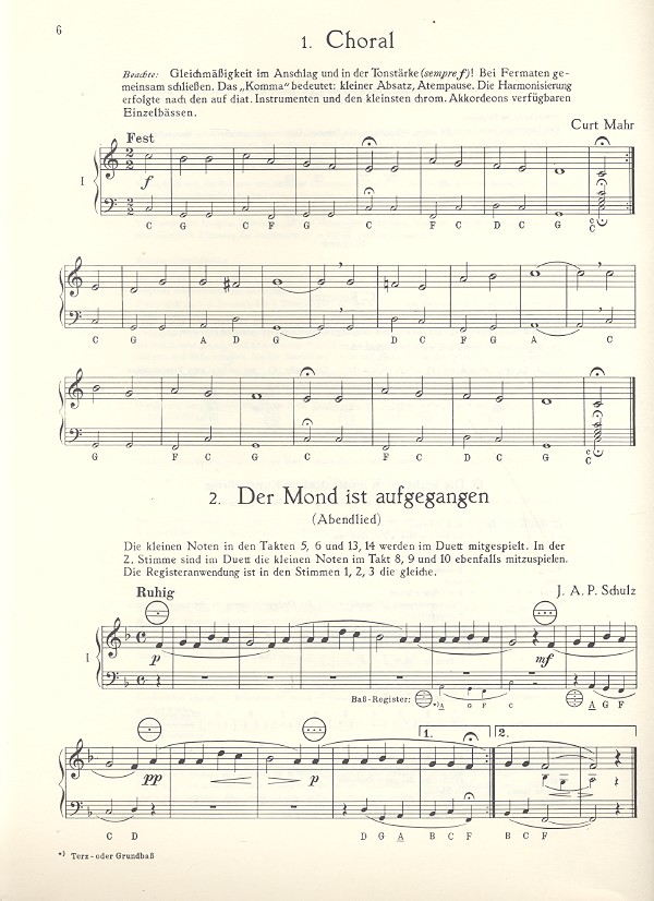 Für choramtisches Akkordeon und diatonische Handharmonika Choral (Mahr) Der Mond ist aufgegangen Sandmännchen (Zucccalmaglio) Heuwalzer (Volksweise) Wenn die bunten Fahnen wehen Aloha oe (Queen Liliuokalani) Bandltanz Die Dorfmusikanten (Mahr) Beim Kronenwirt Steyrischer Ländler (Mahr) Komm in die Gondel (Johann Strauss) Clubkameraden (Mahr)
