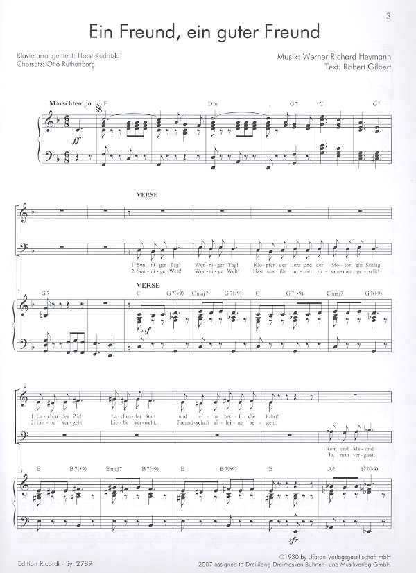 Ruthenberg, Otto, arr. Die 10 schönsten Lieder Ein Freund ein guter Freund Das gibt's nur einmal Liebling mein Herz lässt dich grüßen Eine Nacht in Monte Carlo Kennst du das kleine Haus am Michigan-See Du bist das süßeste Mädel der Welt Wenn der Wind weht Du hast mir heimlich die Liebe ins Haus gebracht Irgendwo auf der Welt Das ist die Liebe der Matrosen