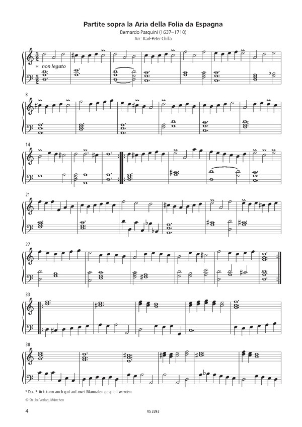 Sehr leicht ausführbare und gut klingende Orgelstücke aus Barock, Klassik und Romantik Ach wie nichtig ach wie flüchtig (Böhme) Allegro moderato (Stubey) Andantino a-Moll (Hesse) Andantino (Rellstab) Entrée (Boellmann) Ich liebe Jesum alle Stund (Bach) Largo (Green) Meinen Jesum lass ich nicht (Hesse) Moderato (Franck) O Haupt voll Blut und Wunden (Hesse) Partite sopra la Aria della Folia da Espagna (Pasquini) Präludium F-Dur (Hesse) Präludium in a (Krieger) Präludium in d (Marchand) Präludium in e (Krieger) Sostenuto (Umbreit) Trumpet Tune (Pepusch) Trumpet Voluntary in C (Dupuis) Voluntary in a (Anonymus) Voluntary in C (Heron)