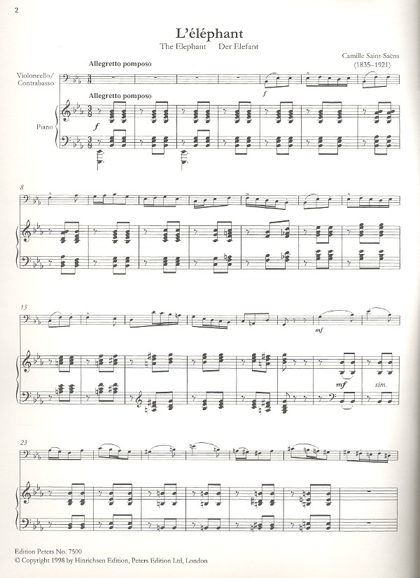 | Untertitel: | für Violoncello (Kontrabass) und Klavier aus 'Der Karneval der Tiere' |