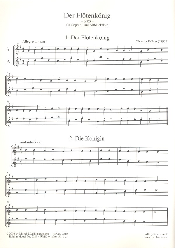 | Untertitel: | für 2 Blockflöten (SA) Spielpartitur |