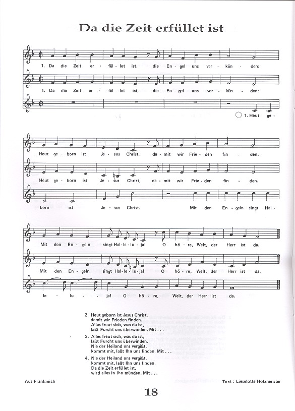 Lieder zur Weihnachtszeit Freudenquell Alle fangt an Als Christus kam zur Erden Ave Maria gratia plena Bauernvolk und Hirtenschar Christ ist geboren Christus ist geboren Da die Zeit erfüllet ist Da kamen drei Könige Der Heiland ist geboren Der Tag, der ist so freudenreich Des Morgens früh Die heilgen drei König Drei Segelschiffe Engel haben Himmelslieder Es ist ein Kindchen Es ist ein Ros entsprungen Es ist für uns eine Zeit angekommen Es kommt ein Schiff Es war ein Jungfrau auserkoren Es war in tiefer Mitternacht Es ziehn aus weiter Ferne Freu dich, Erd und Sternenzelt Freut euch, ihr lieben Christen all Fröhlich soll mein Herze springen Gegrüßt seist du, Maria Gelobet seist du, Jesu Christ Hört zu, ihr Menschen Ich steh an deiner Krippen hier In dulci jubilo Inmitten der Nacht Josef, lieber Josef mein Kommet, ihr Hirten Kommt, ach kommt nach Bethlehem Lieb Nachtigall, wach auf Lobt Gott, ihr Christen Maria durch den Dornwald ging Maria sieht eine leere Scheuer Mit Gott, so wollen wir Nun komm, der Heiden Heiland Nun sei uns willkommen O freudenreicher Tag O Freude über Freude O Heiland, reiß die Himmel auf Seht, es naht die heilige Zeit Still, still, still Vom Himmel hoch Vom Himmel hoch, o Englein Wärst du, Kindchen, im Kaschubenlande Was soll das bedeuten Wir sagen euch an den lieben Advent Zwischen dem Ochs Zumba, zumba welch ein Singen