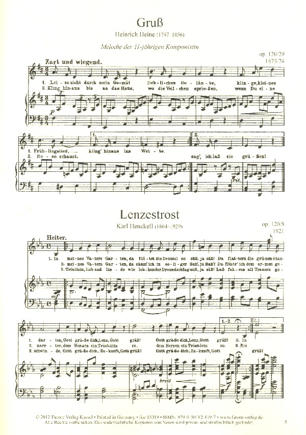 Alles können sie ergründen Alt Heidelberg Der Frühling lockt Frühlingshymne aus dem Liederalbum Frühlingslied Glaube Gruß Helgoland Kumm mit Lenzestrost Lied des Rotkehlchens Siehst du wie in der Ferne Sommerwald Stiller fliedertrunkner Sommerabend Wanderlied