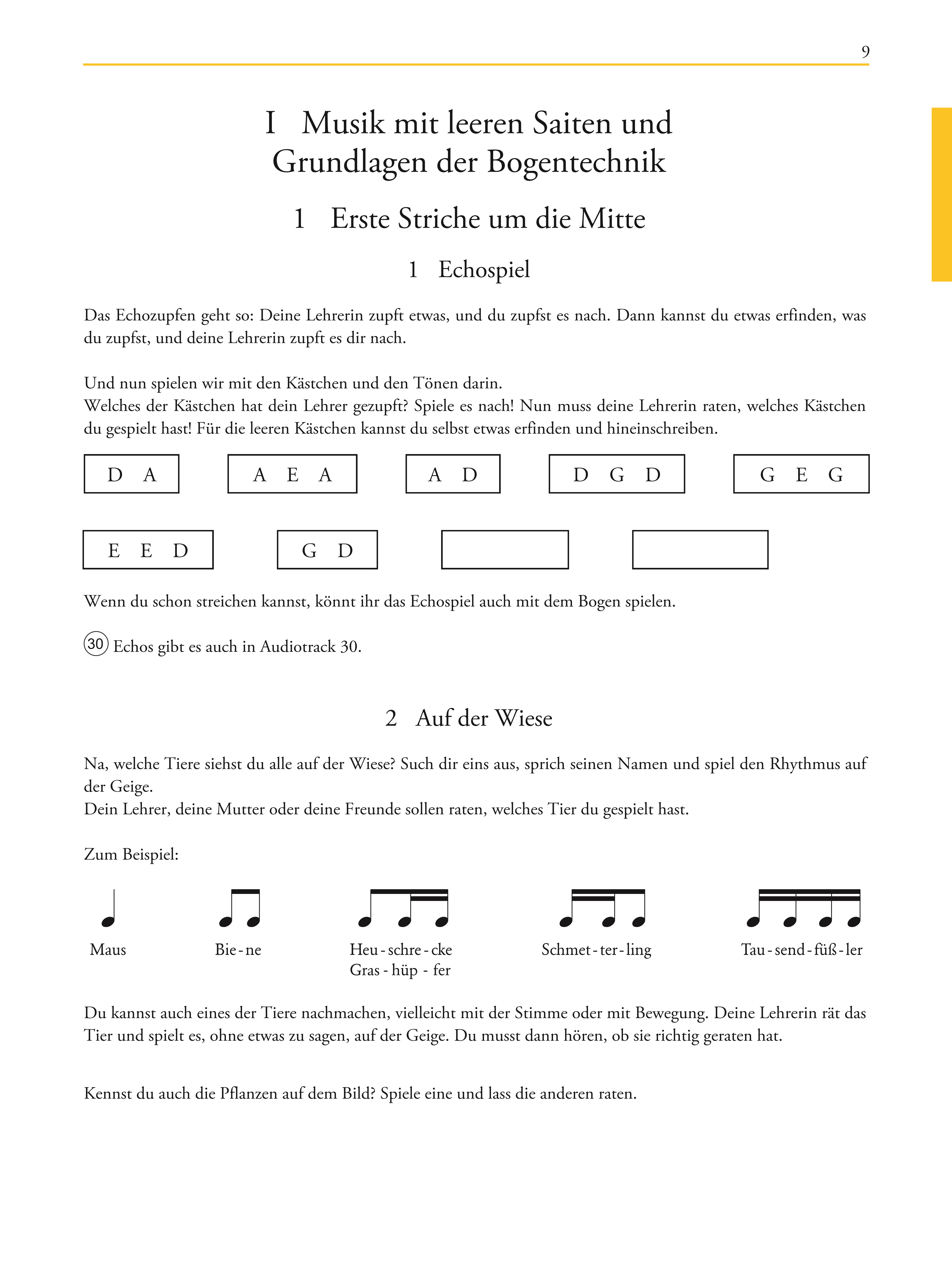 Der Geigenkasten bietet eine Fülle vielfältigster Materialien für den Violinunterricht. Er lässt sich als didaktischer Fundus zusätzlich zu jeder Geigenschule einsetzen, eignet sich aber auf Grund des ansteigenden Schwierigkeitsgrades innerhalt der Kapitel auch als Leitfaden für den Unterricht in der Art einer Violinschule. Heft 1 (EB 8771): Streichen, Greifen, Spielen die ersten Schritte Die einzelnen Abschnitte widmen sich den Themen Haltungs- und Bewegungsspiele Musik mit leeren Saiten und Grundlagen der Bogentechnik (in der Mitte, am Frosch, an der Spitze und an wechselnden Bogenstellen) Greifen in der ersten, zweiten und dritten Griffart sowie mit tiefem ersten Finger Verbindung der Griffarten und Chromatik Rhythmen spielen, lesen, notieren Töne lesen und notieren sowie im Kapitel Musik erfinden der Improvisation. Fast immer gibt es zweite Stimmen zum gemeinsamen Musizieren und Texte zum Singen. Auf diese Weise stellt das Heft Lieder und Violinstücke zu verschiedenen Anlässen und zum Jahreskreis bereit. Zwischendurch ist Wissenswertes zur Geige eingestreut. Ergänzend stehen zwei Ordner mit Audiotracks im MP3-Format zu EB 8771 zum Download bereit. Der erste, Stimmen und Spielen, enthält die Töne der leeren Saiten zum häuslichen Einstimmen sowie 25 Lieder aus dem Heft zum Anhören und Mitspielen. Der zweite Ordner, Im Konzert, enthält eine Auswahl an Violinmusik verschiedenster Stilbereiche. Dabei gibt es vielerlei thematische Bezüge zu Stücken des Heftes zu entdecken. Heft 2 (EB 8772) beschäftigt sich wiederum mittels kurzer zweistimmiger Musizier-Stücke mit dem Lagenspiel (Lagenwechsel, zweite, dritte, vierte und halbe Lage), dem Vibrato und dem Spiccato. Zum Lagenwechsel, einem der zentralen Themen der Streicherpädagogik, enthält der Band ein vertiefendes Lagen-Fitnessprogramm zum Herausnehmen. Heft 3 (EB 8773) schließlich führt in die Stile vom Frühbarock bis zur Gegenwart ein und erweitert die Technik mit Laufwerk, Doppelgriffen und hohen Lagen in Richtung eines virtuoseren Spiels. Der Geigenkasten (Heft 1) wurde 2005 mit dem Deutschen Musikeditionspreis ausgezeichnet.