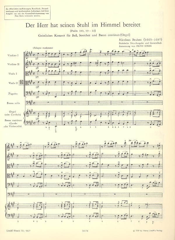 | Untertitel: | fur Bass, Streicher und Bc Partitur |